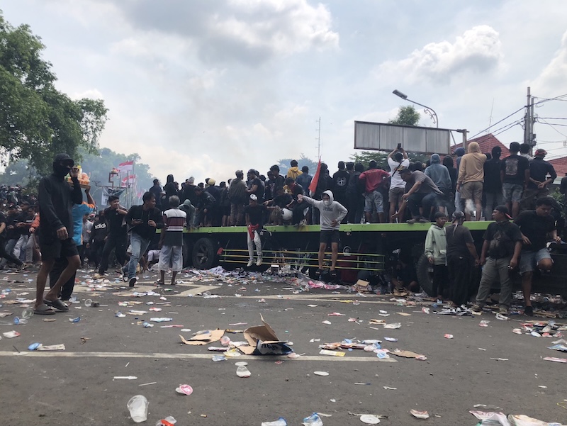Kericuhan terjadi setelah itu. Massa membakar satu mobil polisi, membalik kendaraan provos, dan berusaha masuk ke kantor bupati. Polisi menembakkan meriam air untuk membubarkan kerumunan. Sebanyak 37 orang terluka, dan 11 orang diduga provokator ditangkap.