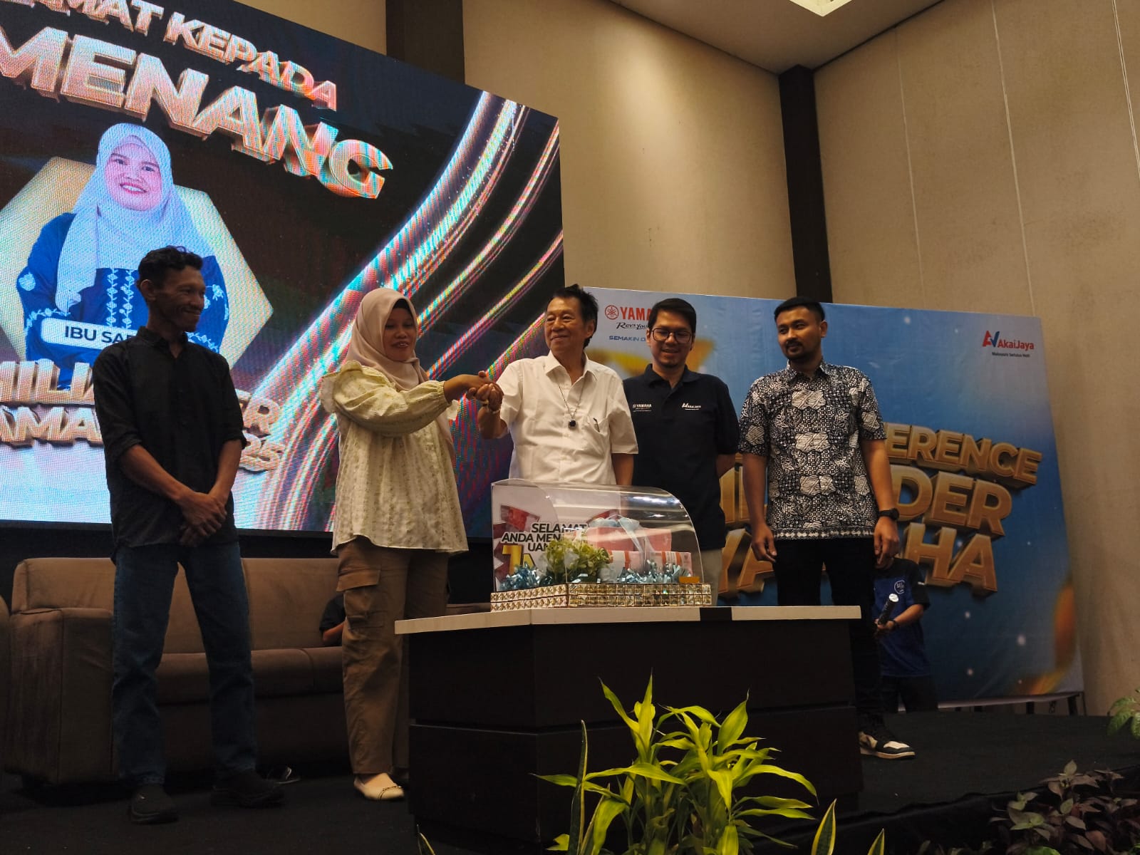 Uang tunai tersebut diserahkan oleh owner CV Akai Jaya Motor, Joni Limbunan kepada Sartina, di acara media gathering Yamaha Miliarder, di Palu, Jumat (26/09/2025), disaksikan para pimpinan leasing dan perbankan di Kota Palu.